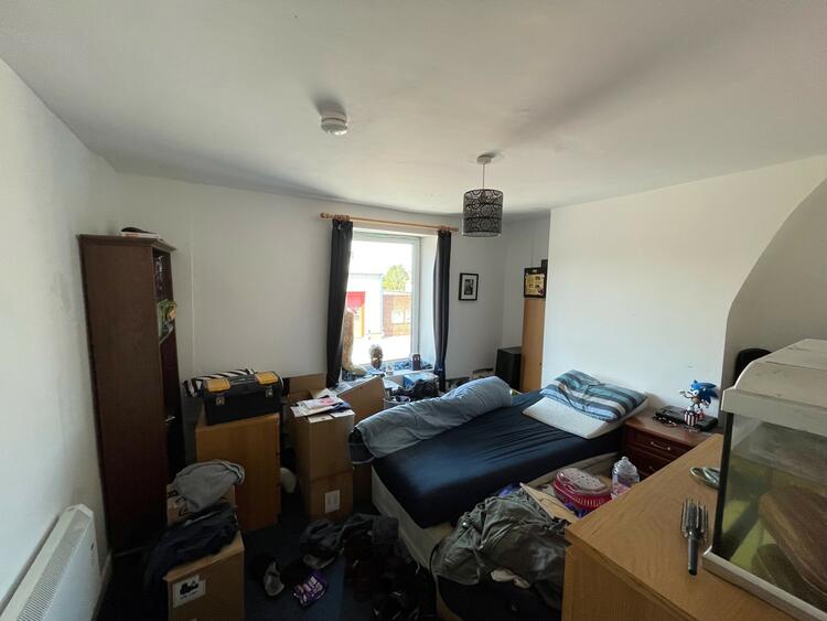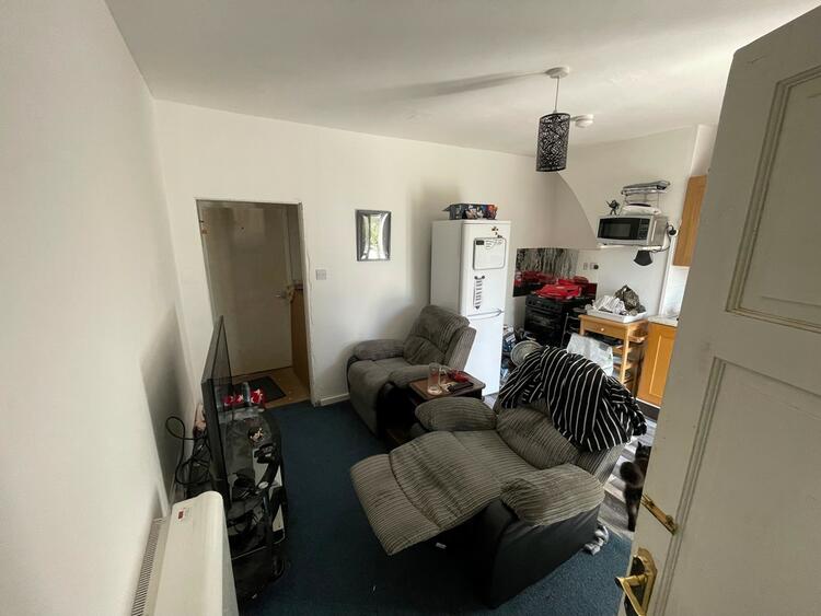 The first floor comprises residential accommodation accessed from a rear metal staircase. The accommodation comprises lounge/kitchen, bathroom, storage and double bedroom.