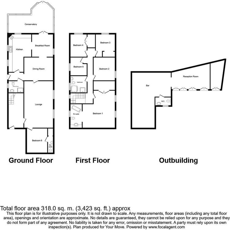 This one of a kind six bedroomed detached property. Upon an internal inspection you will first enter into the welcoming entrance hallway providing access to the spacious living room, bedroom six which also has an en-suite shower room, the dining area with inner hall giving access to the downstairs shower room and the kitchen then leading into the breakfast room and conservatory. Upstairs to the first floor are five bedrooms, with the main bedroom having a walk-in wardrobe and an open plan en-suite bathroom, and a family bathroom. Outside there is off road parking to either side of the property, sheltered decked area, newly laid patio area, and a high building to the rear currently used as a fully functioning bar.