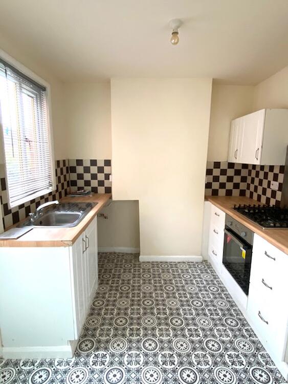Fitted with a matching range of eye and base level units with worktops over incorporating a stainless steel sink unit and five-ring gas hob, built-in oven and space for washing machine and fridge/freezer. Complementary ceramic splashback tiling and tiled effect floor covering, central heating radiator, double glazed windows to side elevation and double glazed exterior door leading onto the small rear courtyard.