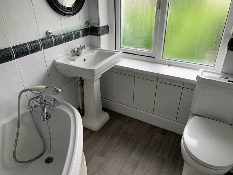Three piece white suite. Part tiled walls. uPVC double glazed window.