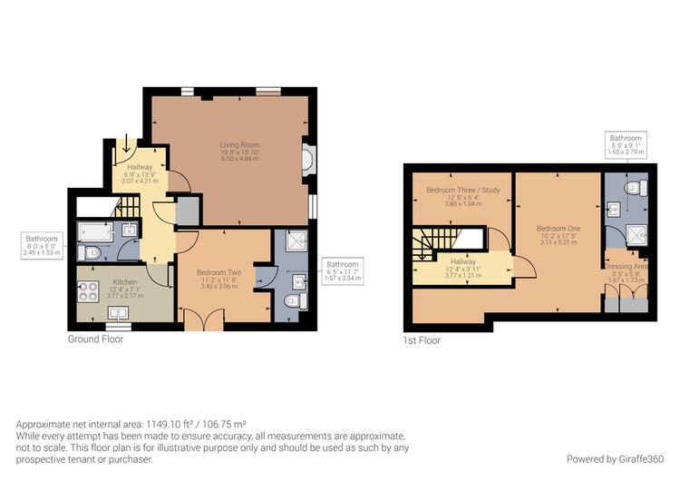 With its accommodation situated over two floors, there is a real homely feel to the apartment. Accessed via the communal entrance hall to the private entrance door into the apartment, there is a real sense of versatility as to how the rooms could be used. Whether a buyer wishes for three bedrooms or a greater number of reception rooms, the apartment caters for all. To the ground floor there is an open plan living dining room which offers pleasant river views, a kitchen with a range of fitted units integrated appliances, a bedroom with French doors and Juliette balcony overlooking the communal garden to the rear and enjoys en-suite facilities. Completing the accommodation on this floor is a bathroom with a three-piece suite. From the first-floor landing there is access into the principal bedroom as well as bedroom three/study. The main bedroom itself is most impressive and features a good degree of ceiling height and a good sense of natural light assisted by an array of skylight windows. It has the benefit not only of an en-suite shower room but also a dressing area with fitted wardrobes.