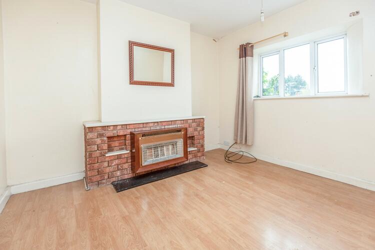 Double glazed window to the front aspect, feature fireplace, wooden laminate flooring and radiator.
