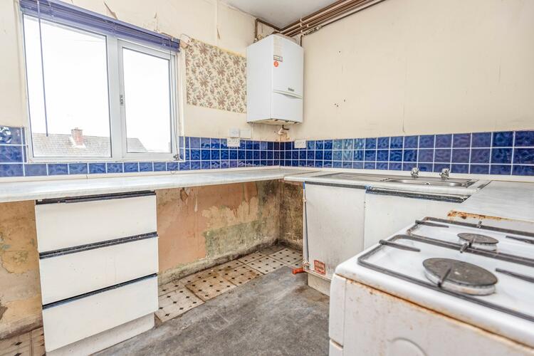 Double glazed window to the front aspect, a range of base and wall mounted units with work surface over, single sink unit with mixer tap, radiator and wall mounted boiler