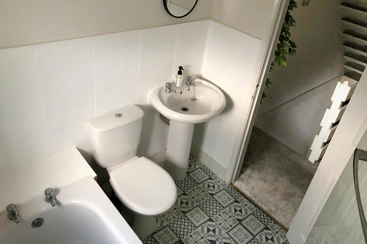 With uPVC double glazed window to the rear elevation. Fitted with a three piece suite in white comprising a panelled bath with shower unit over and shower screen, low level wc, pedestal wash hand basin, tiling to walls and central heating radiator.