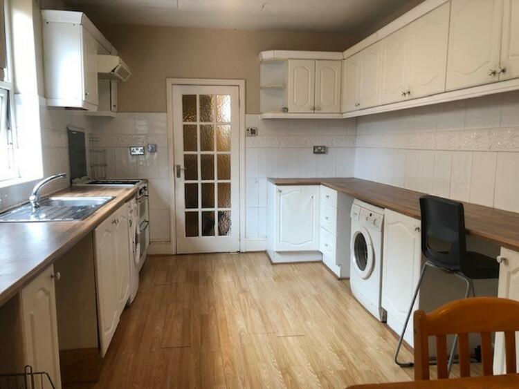 With base and wall units, appliance spaces, space for table and chairs and window to the side aspect.