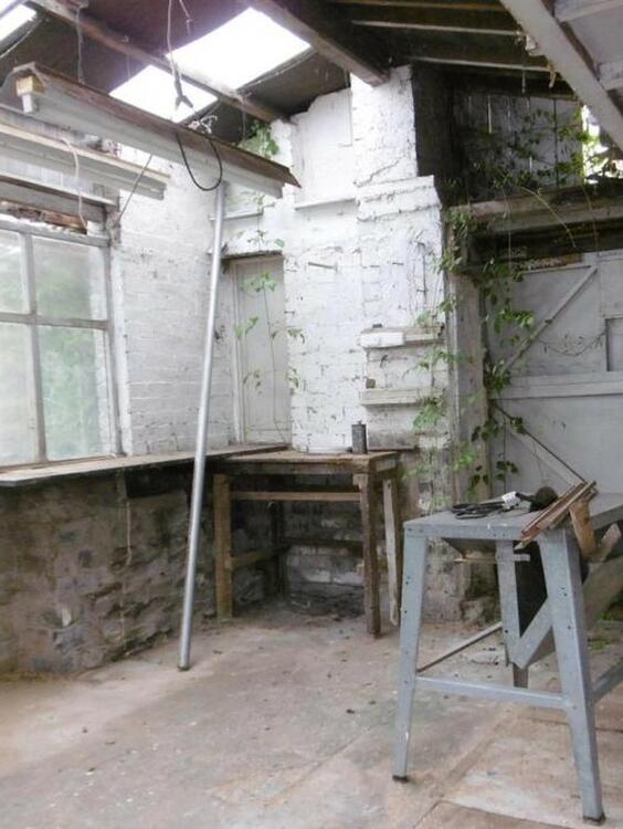 Attached garage with inspection pit and electric roller shutter door, side path leading to rear garden, car port, extensive rear garden, several outbuildings and a large workshop with inspection pit and attached WC.