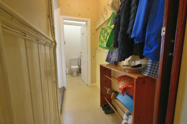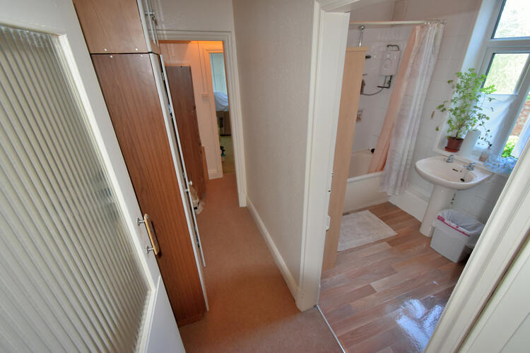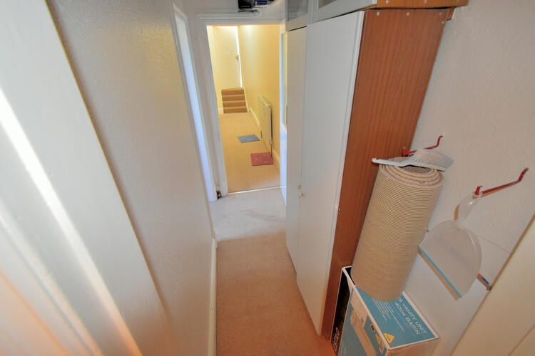 Having stairs to first-floor accommodation and basement under stairs, central heating radiator and doors off to
