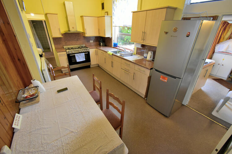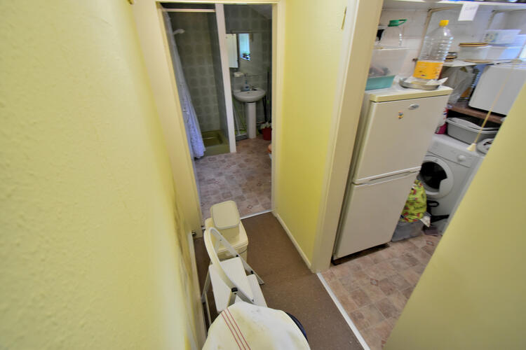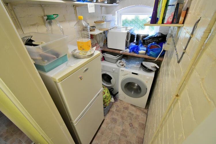 Plumbing for washing machine and tumble dryer, double glazed window to side elevation space for fridge freezer,