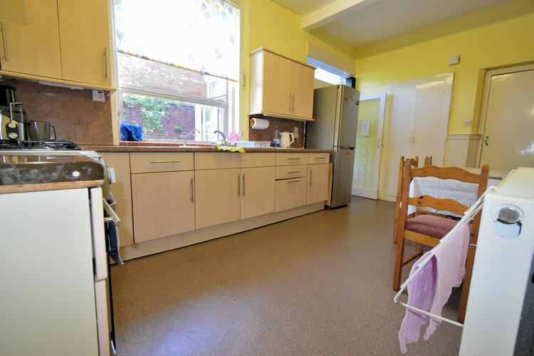 tiling to splash back, space for oven, cooker hood over, central heating radiator access to bathroom and conservatory.