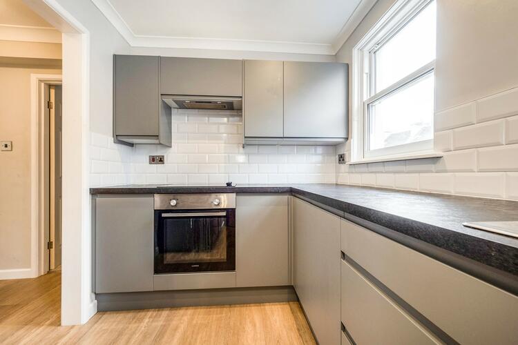 Double glazed sash windows to front aspect, range of matching fitted wall and base units, work tops, stainless steel single sink unit and single drainer, part tiled walls, fitted electric oven and hob with extractor hood over, space for fridge/freezer, plumbing for washing machine, down lighters, coved ceiling.