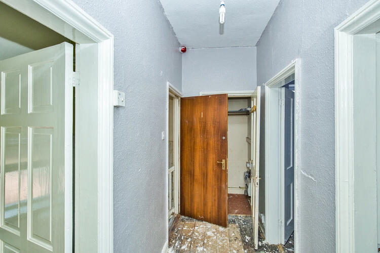 The flat is accessed via a communal side entrance door with staircase rising to the second floor and flats entrance door.