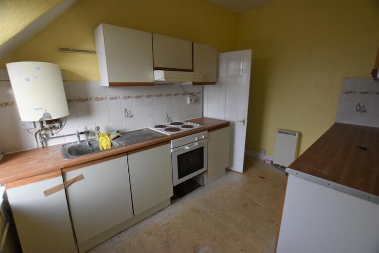 With a range of base and wall units with worktops over, inset stainless steel sink unit, integrated electric oven with inset hob and extractor hood above, plumbing for automatic washing machine, uPVC double glazed window to the rear, wall mounted electric water heater, electric storage heater, access to loft space.