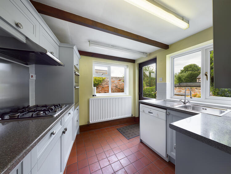 revealed brick with log burner fire and original feature beams to the ceiling, separate dining room with revealed brick fire place and a refitted farmhouse kitchen with useful utility area to the ground floor.