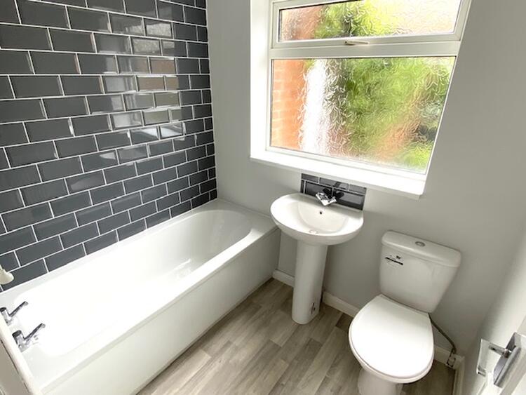 With uPVC double glazed window to the rear elevation. Fitted with a three piece bathroom suite in white comprising a panelled bath with shower unit over, pedestal wash hand basin, low level wc and grey tiling to the walls.