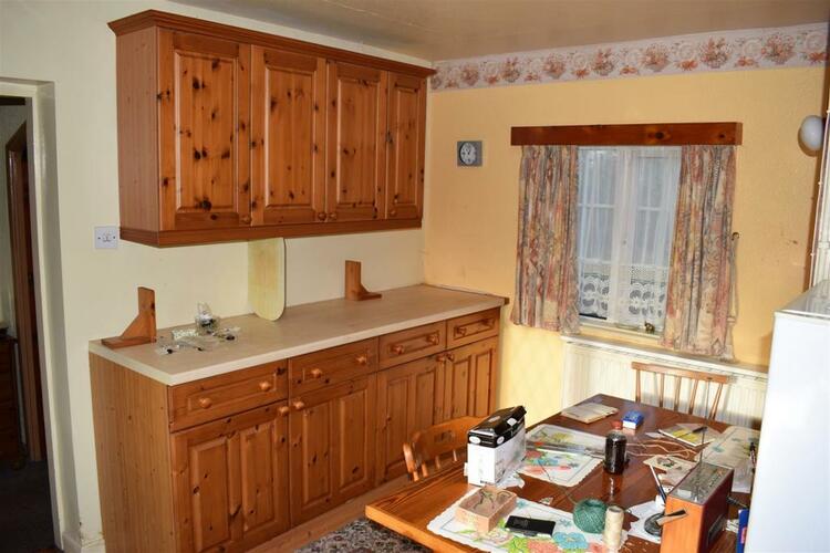 Being L shaped in plan with Pvcu double glazed windows to the front and rear, double drainer stainless steel sink unit with painted cupboards under, electric cooker space with extractor hood over, tiled splash areas, 6 base units and 4 units at eye level in the Kitchen area together with a further range of 4 base and 4 eye level pine effect fronted units to the Dining area and radiator.