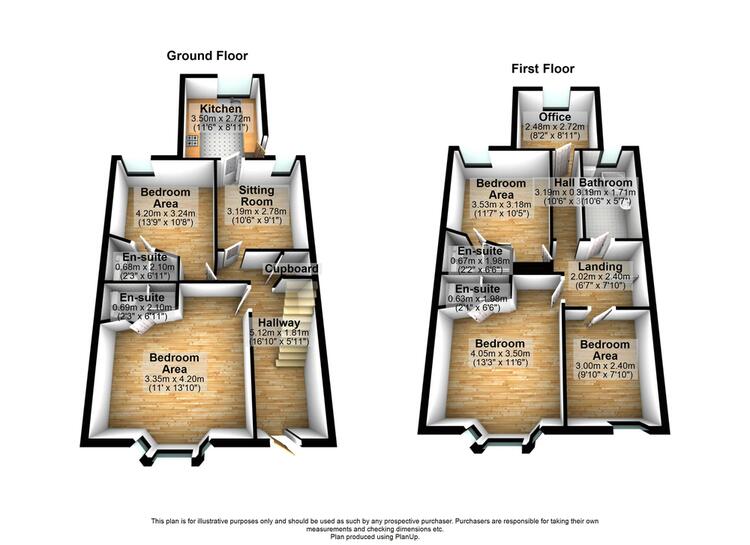 Accommodation briefly comprises of, vestibule entrance hallway, with two bedrooms complete with En-Suites, sitting room, kitchen and yard to the rear. Upstairs are 3 bedrooms (2 with En-suite) large bathroom and hallway leading to the rear office.