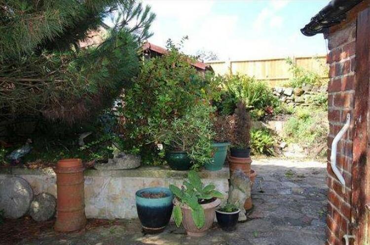 to the rear of the property there is a garden area which has been paved for easier maintenance, timber garden shed and garage