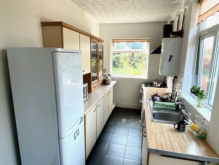 13ft 10 x 6ft 9. With double glazed windows and door. The fitted kitchen comprises a range of wall mounted cupboards with matching base units, preparation surface, stainless steel sink and drainer, mixer tap and splashback tiling. There is a cooker point with cooker hood over, plumbing for washing machine, wall mounted Worcester combination boiler (we are informed installed December 2019) and radiator.