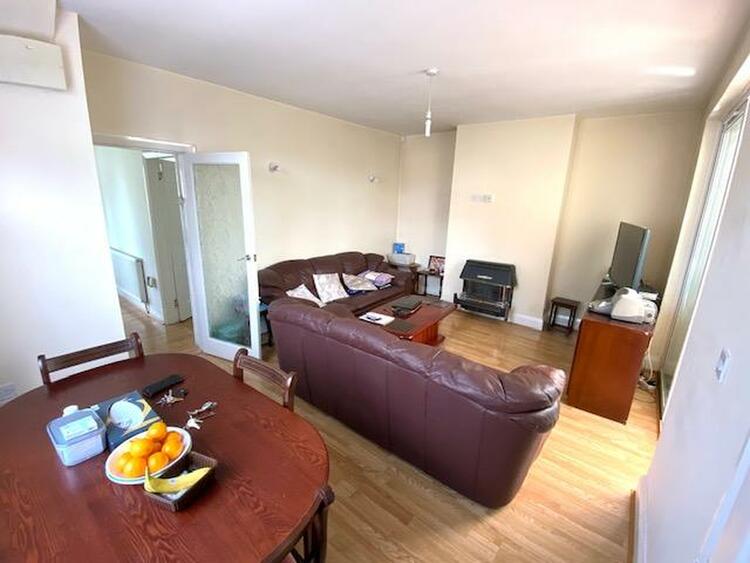 17ft 4 into chimney recess x 17ft. With double glazed patio door and window to rear, wall mounted gas fire, radiator.