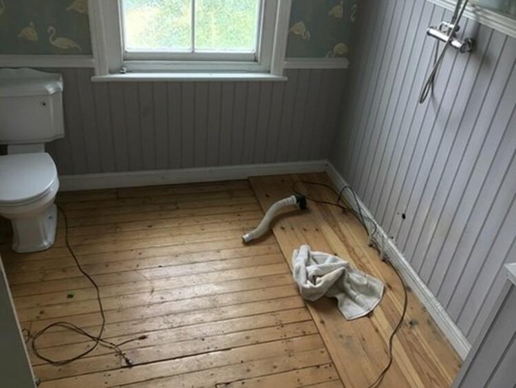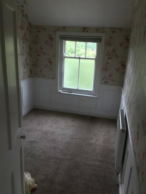 Comprising of a W/C, hand wash basin, a central heating radiator and a side facing window.
