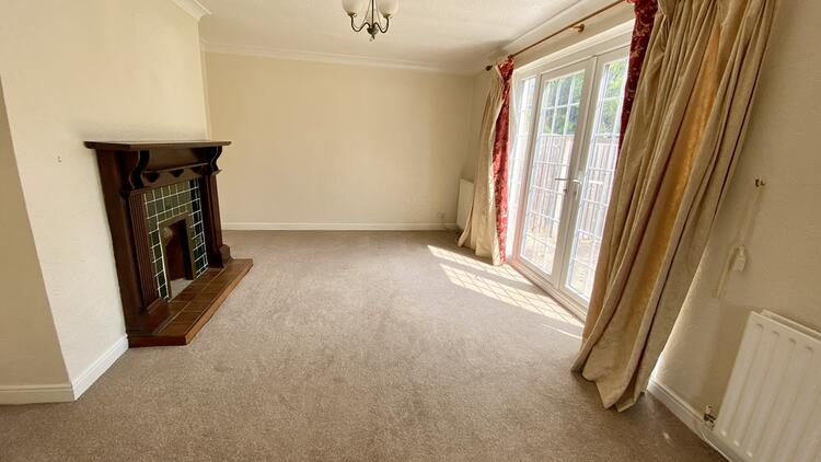 having feature fireplace with fire facility, tiled surround and hearth, plaster coved ceiling, two central heating radiators, wall lights and tv aerial point. Upvc double glazed patio doors opening onto the south facing rear garden.