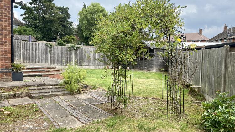 DETACHED GARAGE with up and over door. To the right hand side there is a lawned area with application for planning permission for the erection of an adjoining annexe. South facing rear garden with well fenced boundaries and patio area.