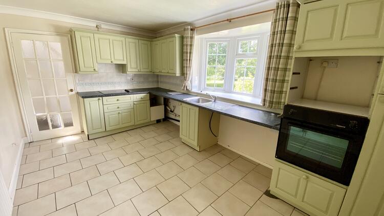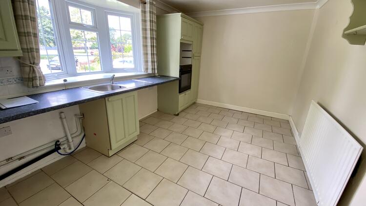 having good range of Shaker style units including base units, drawers and wall cupboards, matching work surfaces and inset single drainer stainless steel sink with mixer tap, space and plumbing for washing machine and dishwasher, built in electric oven and grill, ceramic hob with extractor hood over, ceramic tiled flooring and central heating radiator.