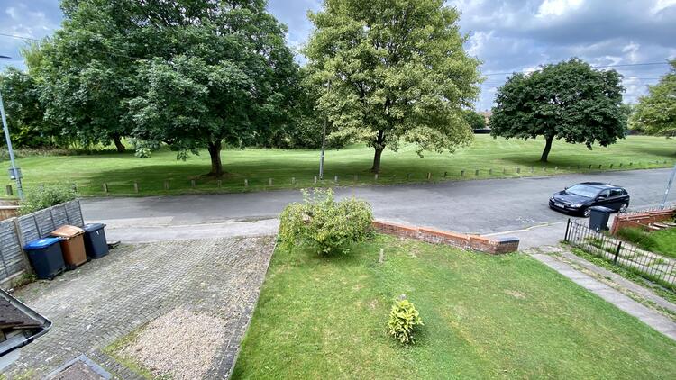 There is direct vehicular access over a block paved driveway with standing for several cars and a lawned foregarden.