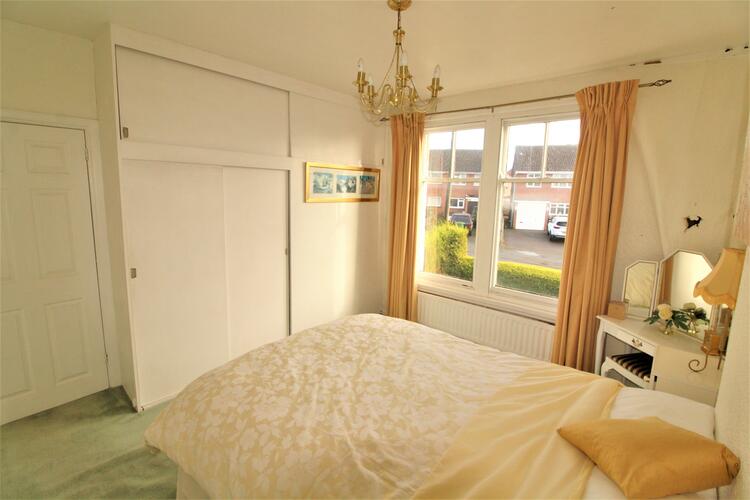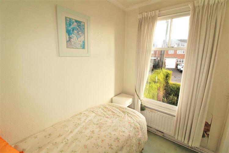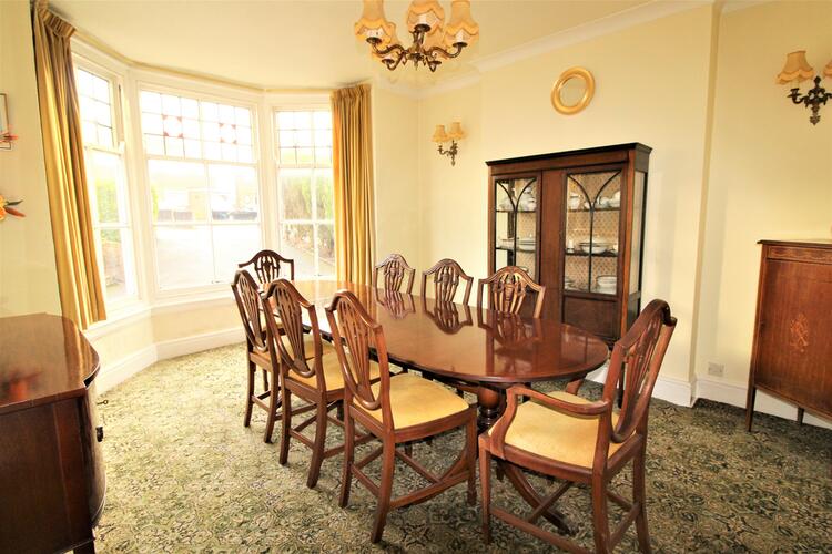 Walk in bay window with sash casements and leaded/stained glazed top lights, radiator.