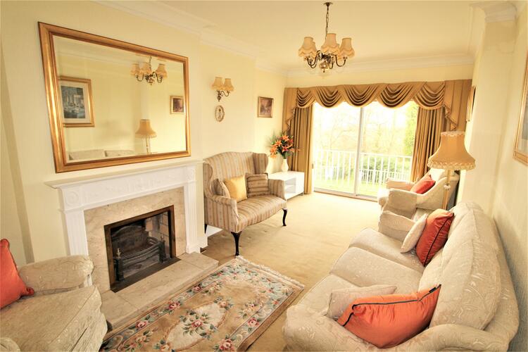 Feature overmantle surround to open fire, double radiator, aluminum double glazed patio doors to rear balcony.