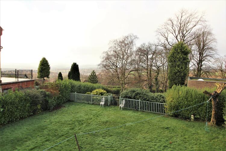 Extensive lawn with central steps down to a further turfed area with a wide range of established shrubs plants and trees offering further potential.