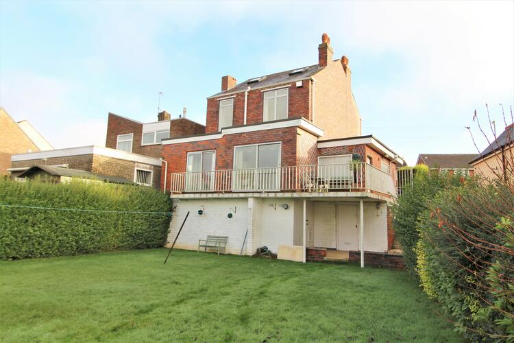 There is a projecting balcony running alongside the rear elevation linking up patio doors from the kitchen and lounge and onto steps down to the exceptionally large rear garden