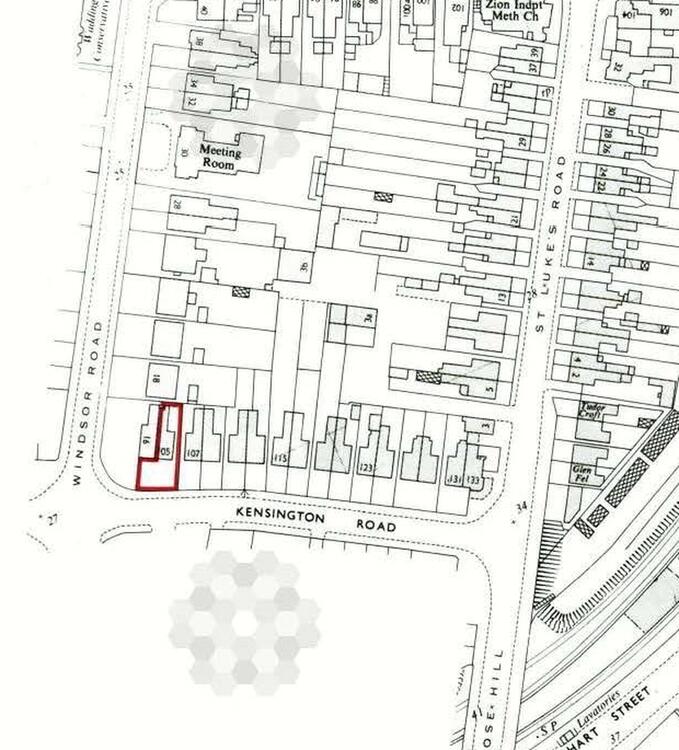 Fore-garden and off-street parking area for two cars enclosed concreted yard at rear.