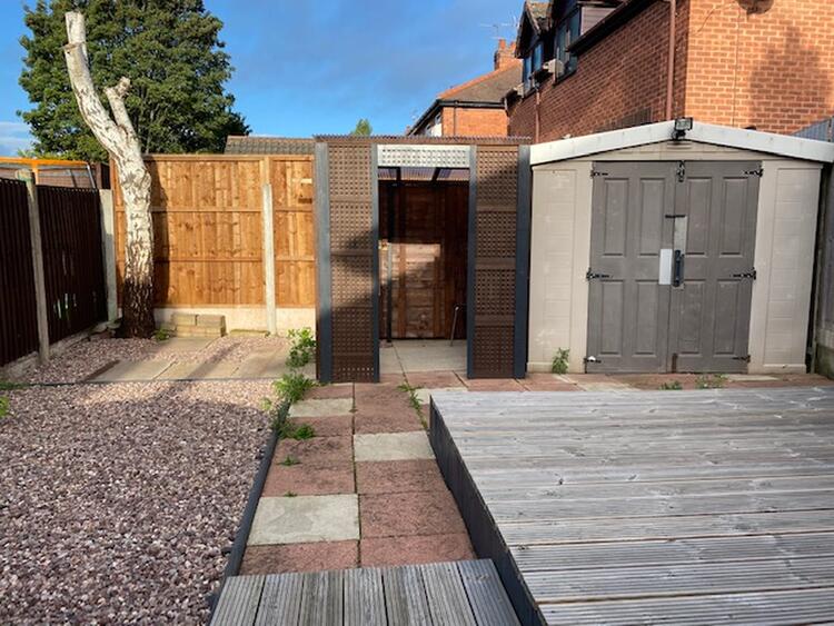The property commands a prominent corner plot position with a landscaped fore garden and adjacent driveway provides useful car standing space. There is gated access leading to a delightful enclosed landscaped rear garden with decking, pea gravel, slabbed areas, storage sheds and timber panelled fencing with concrete posts.