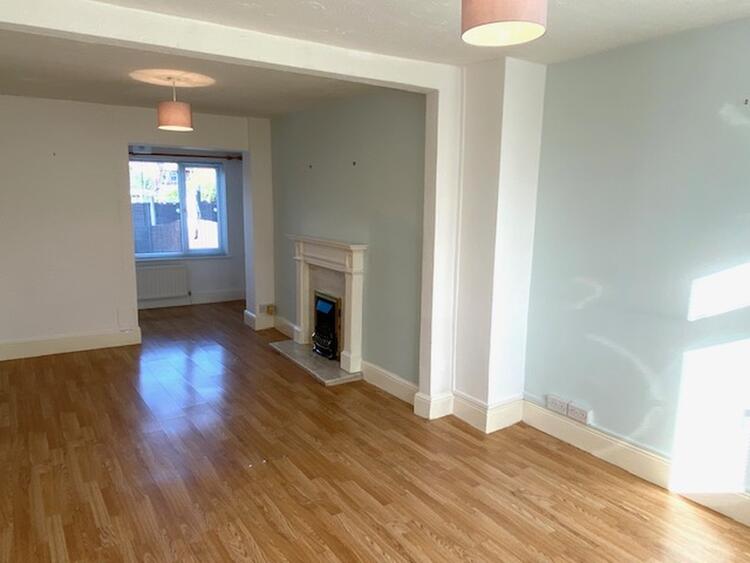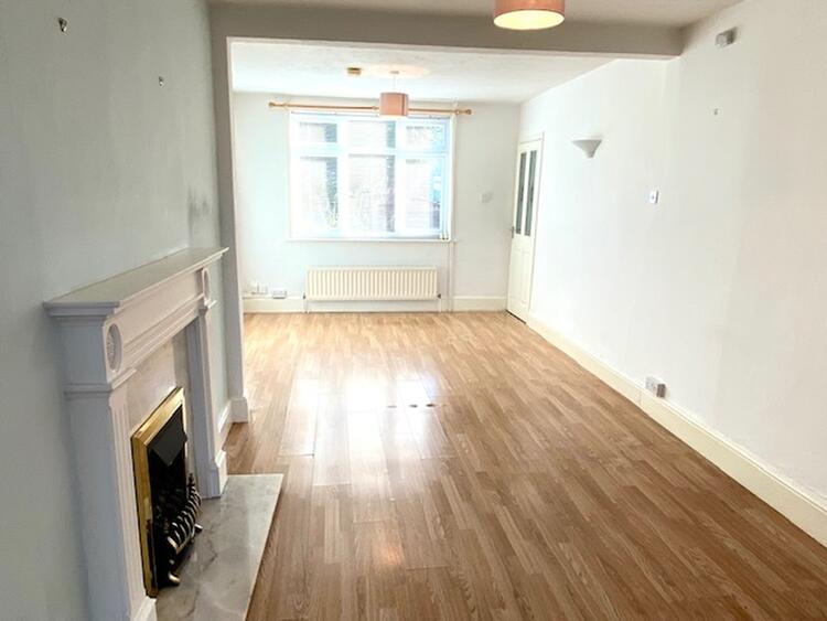 With uPVC double glazed window to the front elevation. The focal point of the room is the gas fire incorporating a coal living flame effect with marble in-situ back and hearth with Adam style surround and mantle, laminate floor covering, television point, central heating radiator and opening through to -