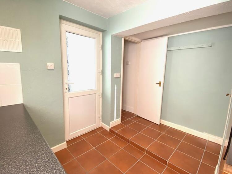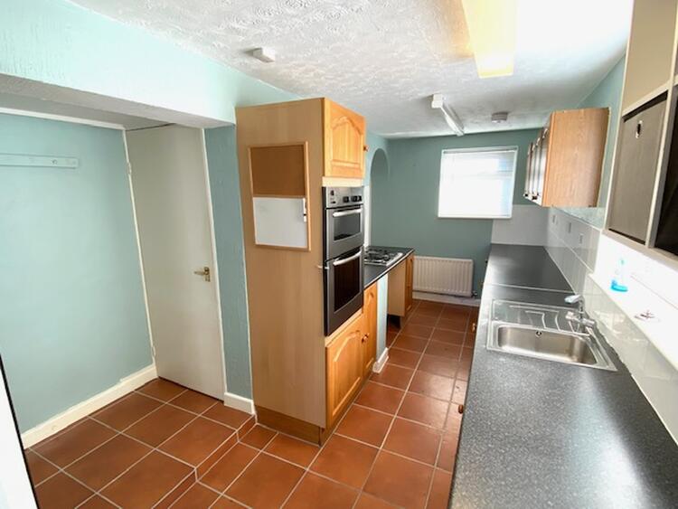 With uPVC double glazed window to side elevation. The fitted kitchen comprises a comprehensive range of wall mounted cupboards with matching base units, drawers, preparation surface, stainless steel sink and drainer with splashback tiling. Integrated appliances comprise a double oven with grill, separate four ring gas hob and plumbing for washing machine. There is also a wall mounted combination boiler, tiled floor covering, central heating radiator, useful understair storage cupboard, pantry and archway leading through to -