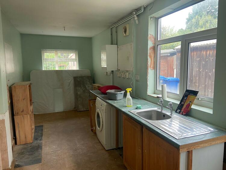 In need of refitting. With uPVC double glazed windows to the side and rear and UPVC double glazed window to the side, base unit with inset stainless steel sink and drainer and central heating boiler.
