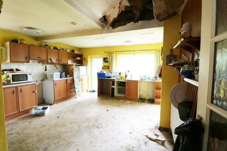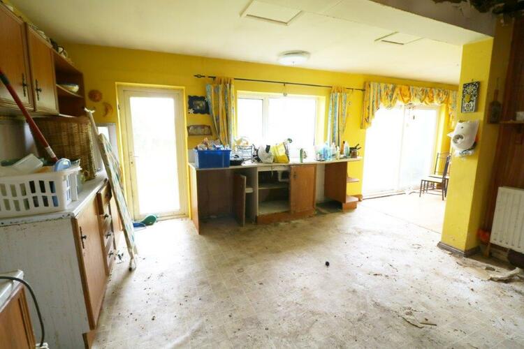 Being fitted with a range of wall, base and drawer units with a work surface over incorporating a sink and drainer unit. Space for freestanding gas cooker, space