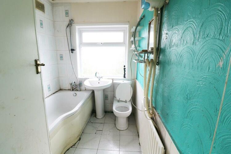 Being fitted with a white suite comprising of a panelled bath with shower over, pedestal wash hand basin and a low flush W.C. Radiator, tiling to splash prone areas and floor, ceiling light point and an obscure double glazed window to the rear elevation