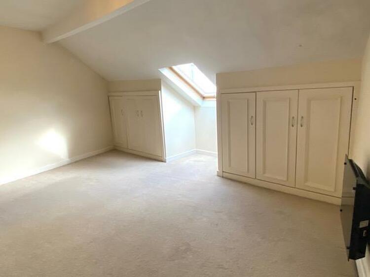 (Please note this is an irregular shaped room). With roof light, fitted cupboards into the eaves.