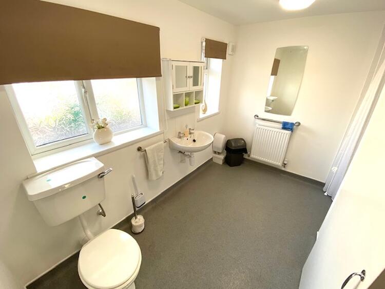 With two uPVC double glazed windows to the rear elevation. A thoughtfully designed wet room comprising a recessed shower area with shower unit over and tiling to walls, low level wc in white with wash hand basin, further tiling and central heating radiator.