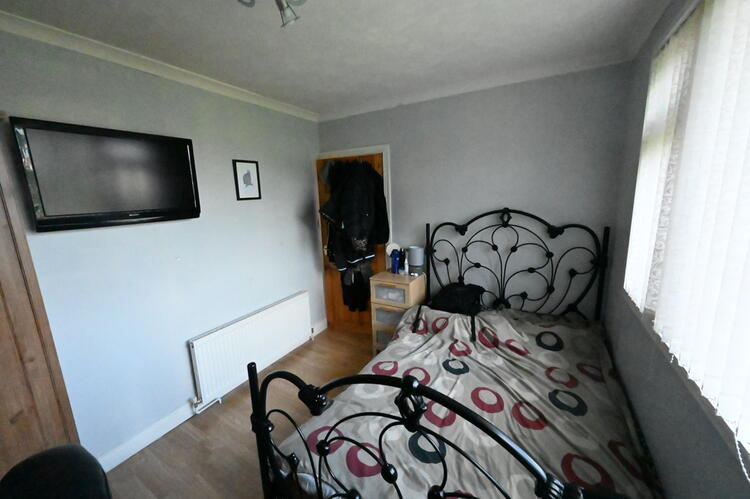 Generously proportioned bedroom which comfortably accommodates a double bed and extra furniture, laminate flooring, radiator, double glazed window.