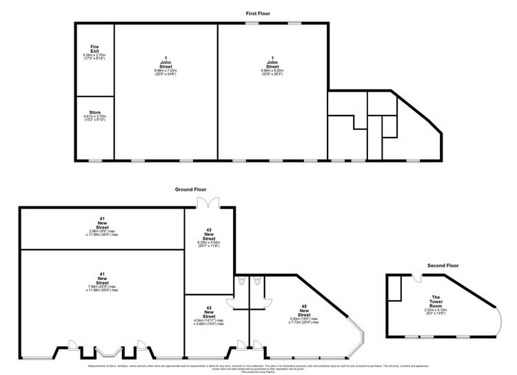 The building offers superb internal floor space with ground and first floor offering in excess of 200m2 and high ceilings throughout. The cellar mirrors the ground floor footprint with reasonable head height (approx 6 1/2 feet) and a large room in the tower block, to the New Street and John Street corner.