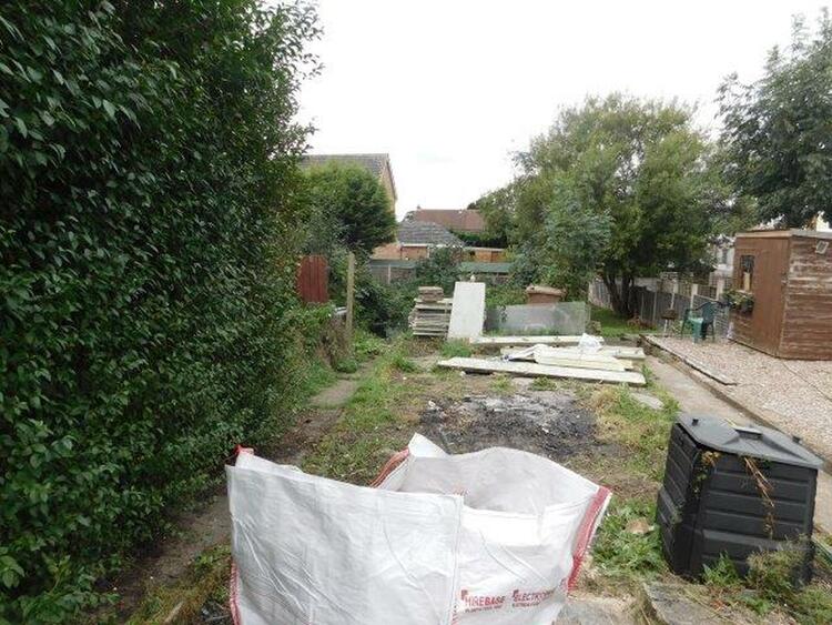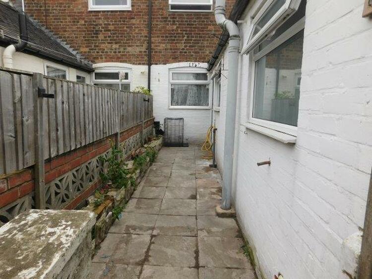 Shared pathway leading to the property. Garden to the front. Shared access with neighbouring properties to the rear. Paved courtyard and garden in need of attention.