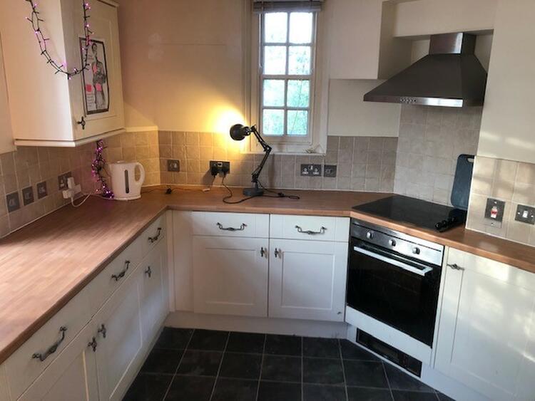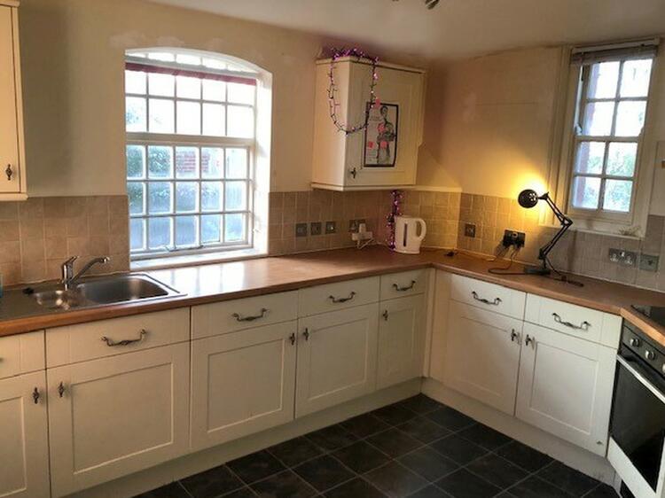 With a modern range of base and wall units. Sink unit, integrated oven, hob and extractor. Work surfaces and windows to three aspects.