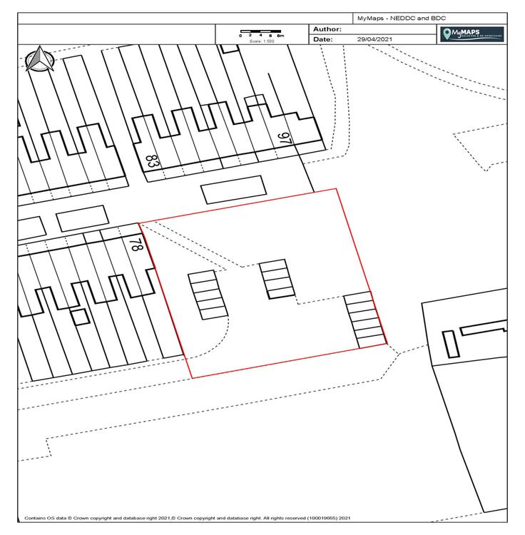 A large previously developed parcel of land currently used as a garage court and offering a potential development opportunity for two dwellings, subject to obtaining planning permission.