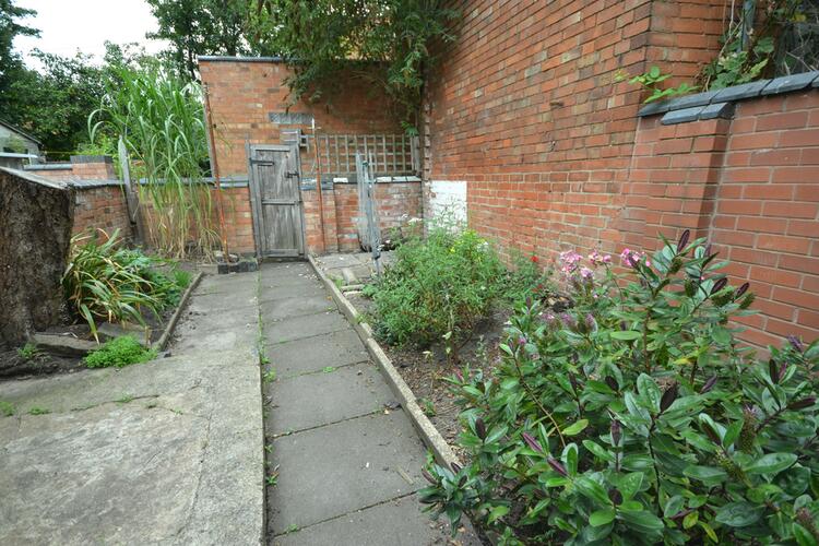 A small forecourt garden and a pleasant rear garden enclosed by brick walling and having flower beds, brick store and rear gated access.