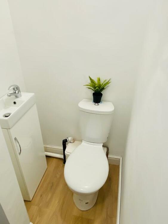 Fitted with a low flush wc and vanity hand-wash basin.