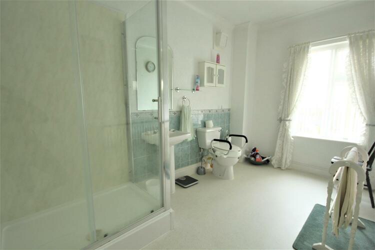This large family bathroom consists of a modern three-piece bathroom suite, comprising low level W/C, wash hand basin and double width shower cubicle. Part tiled walls, radiator and a window to the rear elevation.