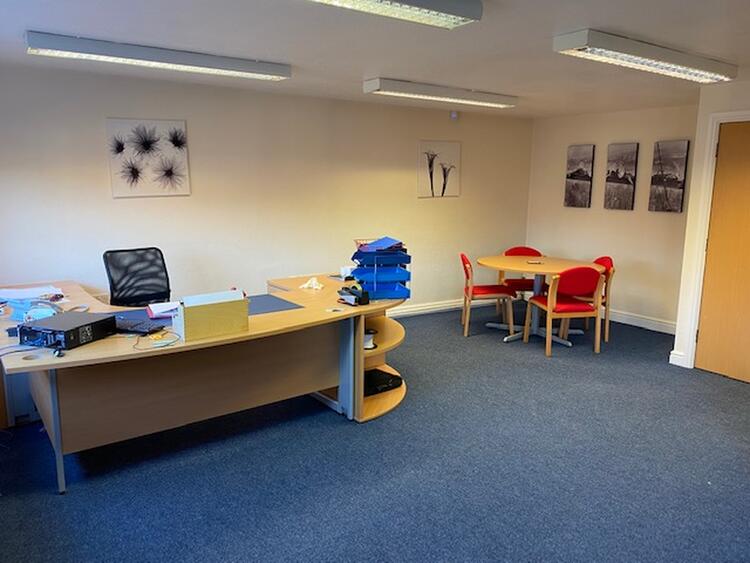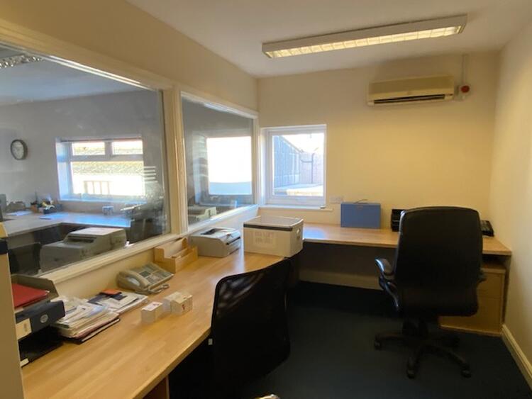 With uPVC double glazed window to the side elevation, internal glazed window overlooking the open plan office